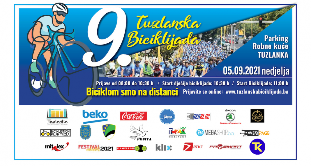Danas se u Tuzli održava 9. tuzlanska biciklijada. Zbog toga će od 11 do 13 sati dolaziti do povremenih obustava saobraćaja na dionici kretanja kolone učesnika na biciklima, saopšteno je iz MUP TK-a. Biciklijada kreće od RK TUZLANKA, a dalje odredišne tačke su Miladije, Siporex, Solana, Irac, Skver, Panonska jezera, Brčanska malta, Ši selo, Dom penzionera, SKPC Mejdan. Dužina koju će biciklisti preći je 14,4 km.