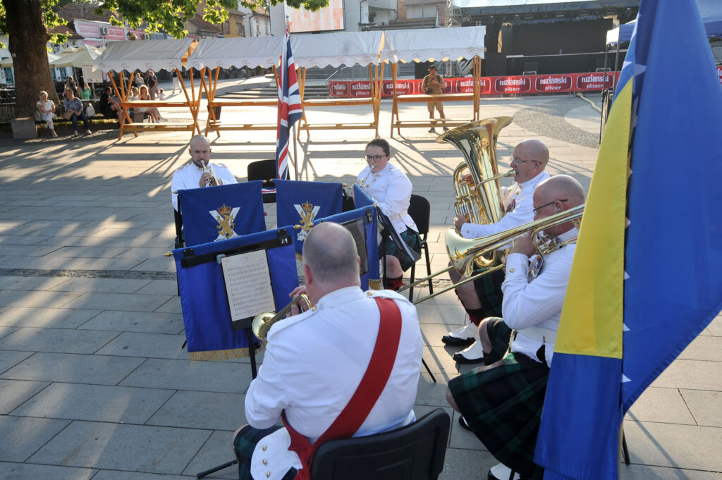 britanski vojni orkestar koji ove sedmice boravi u bih veceras je odrzao koncert na trgu slobode u tuzli