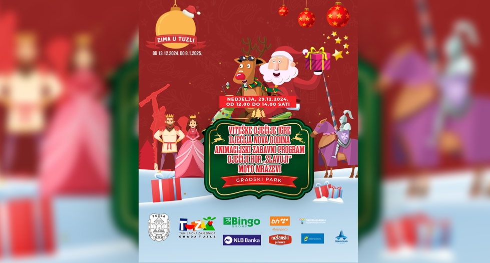 Pored toga, u Gradskom parku će biti i animacijski zabavni sadržaj za najmlađe, zajedno sa viteškim srednjovjekovnim igrama, kako bismo na sve načine obradovali našu djecu i zajedno s njima proslavili Dječiju Novu godinu!
