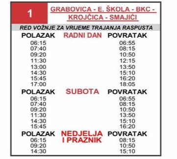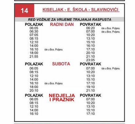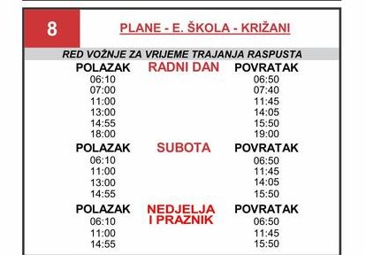 Red vožnje prilagođen je za radne dane, subote te nedjelje i praznike, a polasci su organizovani od ranih jutarnjih do kasnih večernjih sati, s povratkom sa gradskih i prigradskih stanica, navodi RTV7.