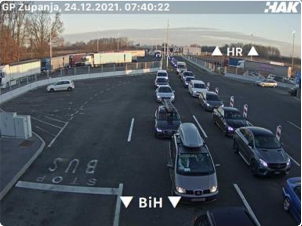 Pojačana je frekvencija vozila na ulazu u Bosnu i Hercegovinu pojedinim graničnim prelazima. Kako je saopćeno iz BIHAMK-a, radi se o graničnim prelazima: Velika Kladuša, Bosanska Gradiška, Gradina, Bosanski Brod i Orašje. Na ostalim graničnim prelazima zadržavanja su, za sada, do 30 minuta.