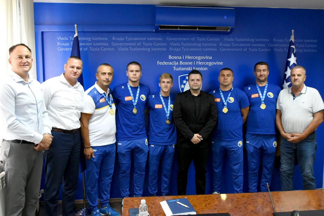 Kako bi odali priznanje i čestitali za uspjehe i plasman na Euro 2026. godine, ministar za kulturu, sport i mlade Tuzlanskog kantona Damir Gazdić i šef Odsjeka za sport Ermin Jusufović primili su danas predstavnike U-18 reprezentacije Bosne i Hercegovine koji su osvojili EHF Championship 2024 u Slovačkoj.