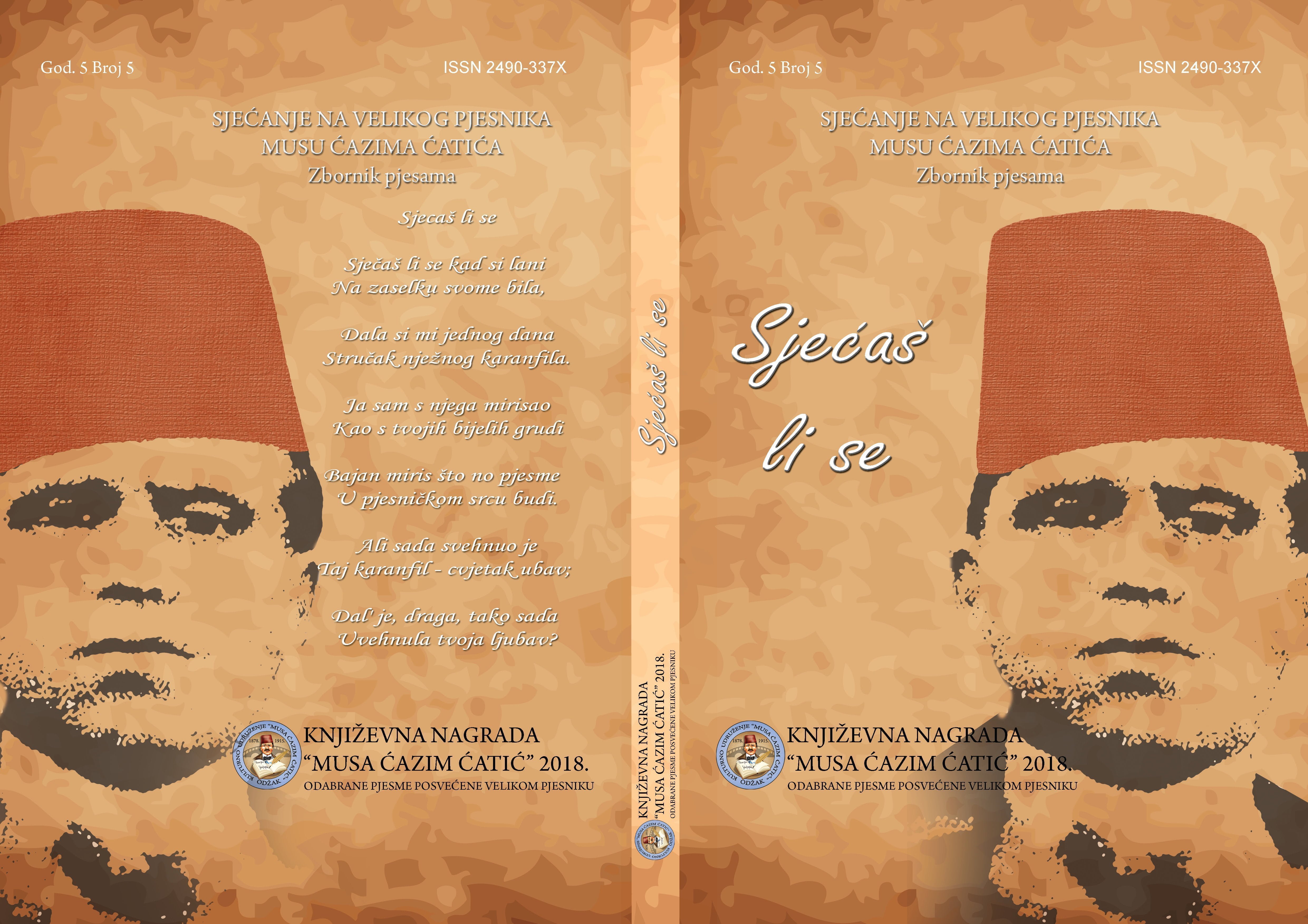 POZNATI REZULTATI KONKURSA ZA KNJIŽEVNU NAGRADU „MUSA ĆAZIM ĆATIĆ“ZA NAJBOLJU PJESMU, 2018. god.