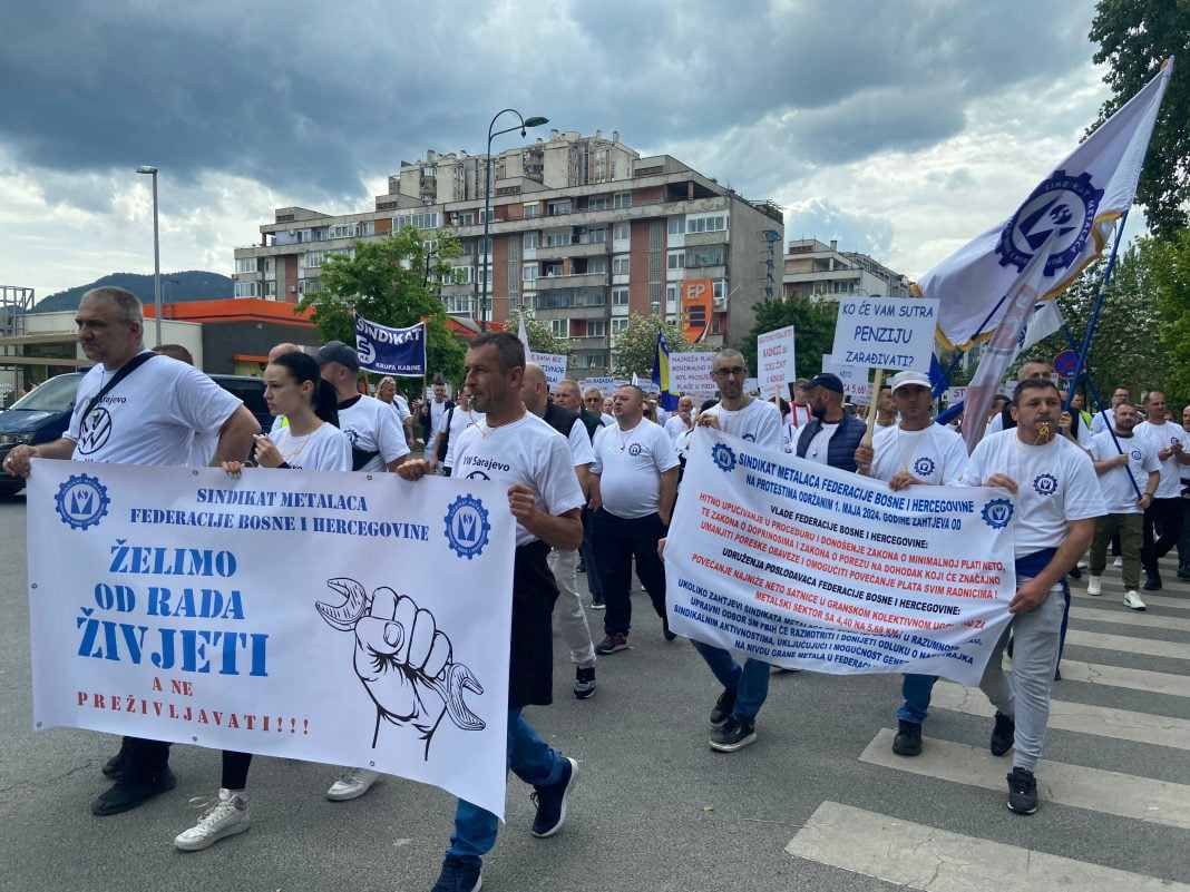 Sindikat radnika trgovine i uslužnih djelatnosti Bosne i Hercegovine (STBiH) i Sindikat metalaca Federacije BiH organizovali su u srijedu u Sarajevu prvomajski protestni marš, zbog teškog položaja u kojem se nalaze, javlja Anadolu.