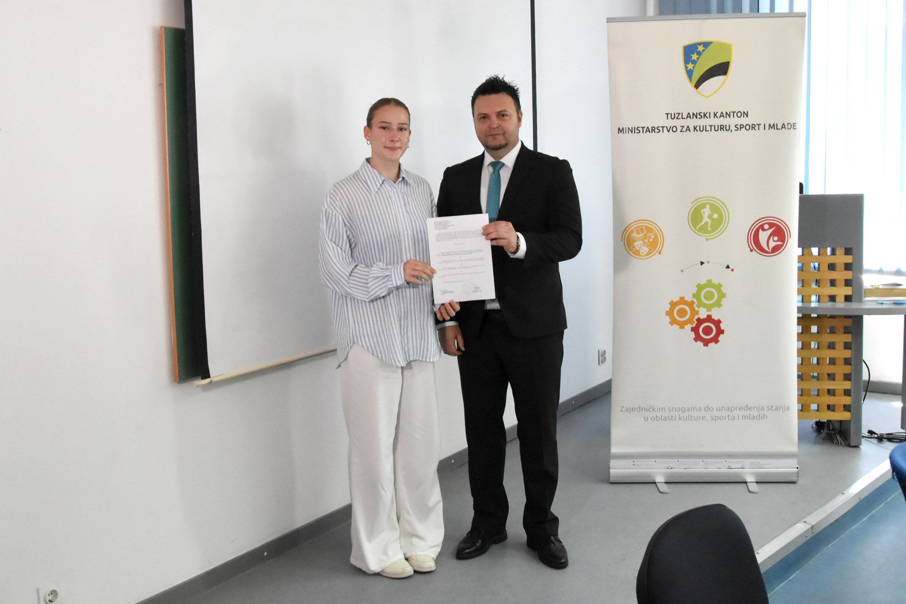 Ministar za kulturu, sport i mlade Tuzlanskog kantona Damir Gazdić uručio je danas odluke korisnicima sredstava po Javnom pozivu za dodjelu stipendija za sportiste i trenere za 2025. godinu.