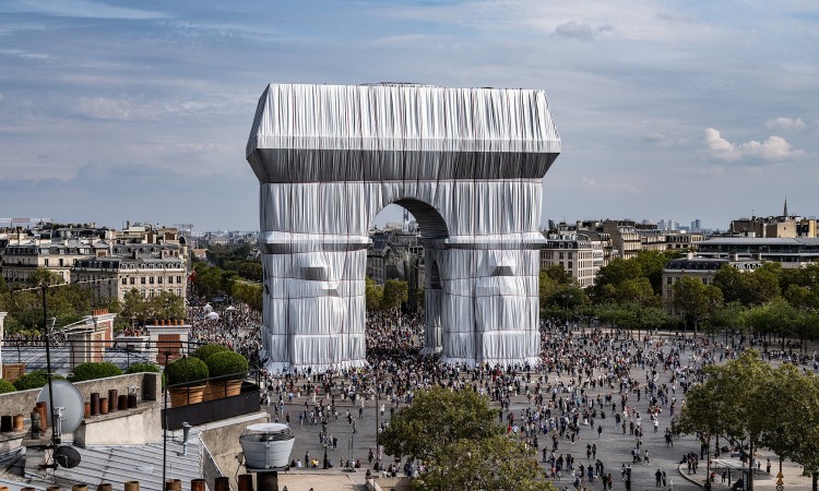 Spomenik koji se nalazi na slavnom bulevaru Champs Elysees, bio je pokriven s 25.000 kvadratnih metra srebreno – plavog polipropilena na tri sedmice u septembru i početkom oktobra.