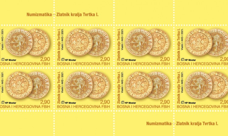 Hrvatska pošta (HP) Mostar tiskala je dvije prigodne poštanske marke „Numizmatika 2021.“ s motivima zlatnika kralja Tvrka I. Kotromanića.